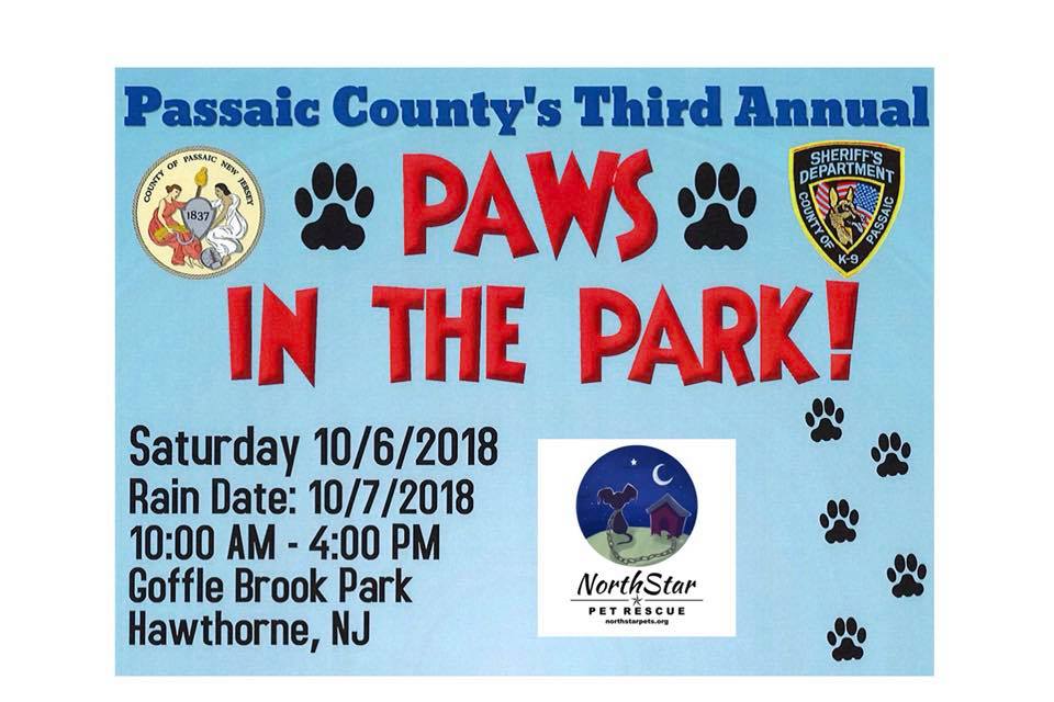 Join us for Passaic County’s 3rd Annual PAWS IN THE PARK! Cat & Dog Adoptions, K9 Demonstrations, Microchipping, Facepainting, Pet Contests, Food Trucks, Prizes & More! Proceeds Benefit the Passaic County Sheriff’s Department K-9 Unit. Totally #pawesome! (Rain date 10/7/18) #NSPR#NorthStarPetRescueNorthStarPets.org