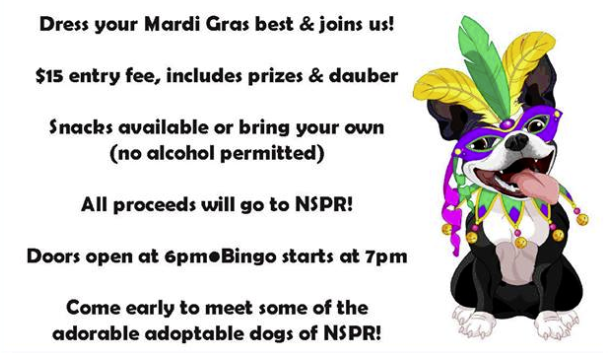 St. John’s Bingo Fundraiser for NorthStar Pet Rescue! $15 entrance fee includes prizes and dauber. No need to sign up ahead of time, just come! Snacks available or bring your own (no alcohol permitted). All proceeds will go to NorthStar Pet Rescue. Doors open at 6pm and some of our adorable adoptables will be there to meet you. Ed’s calling the numbers! Games start at 7pm. BINGO! Come join the fun! NorthStarPets.org