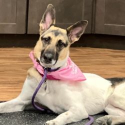 Ash is a year-old Belgian Malinois mix. Like any puppy, she needs to learn her manners and what is expected of her. She does sits nicely whenever the possibility of a treat comes around and also sits and waits for her meals to be served. She has even taught herself to go to the door when she has to go out. Don’t worry, if you’re not around to see it, she’ll give you a verbal warning. Ash is housebroken and kennel trained, although she prefers a treat or two when entering her kennel.