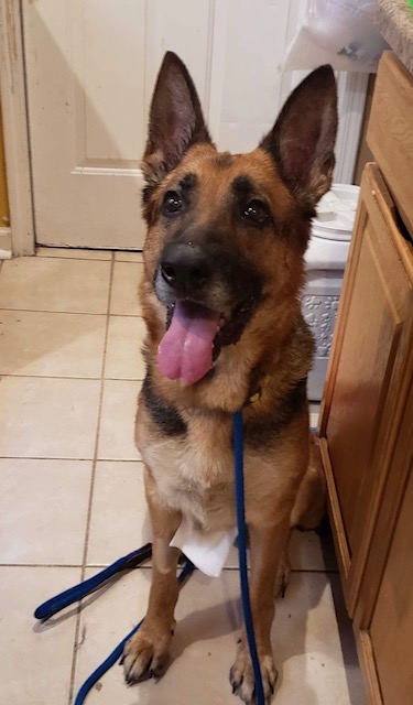Hi! My name is Emmaline! I appear to be a purebred German Shepherd and I was surrendered to a shelter in Kentucky in horrible condition. I was infested with fleas and extremely dehydrated. It is evident that I was heavily bred throughout my life, too.